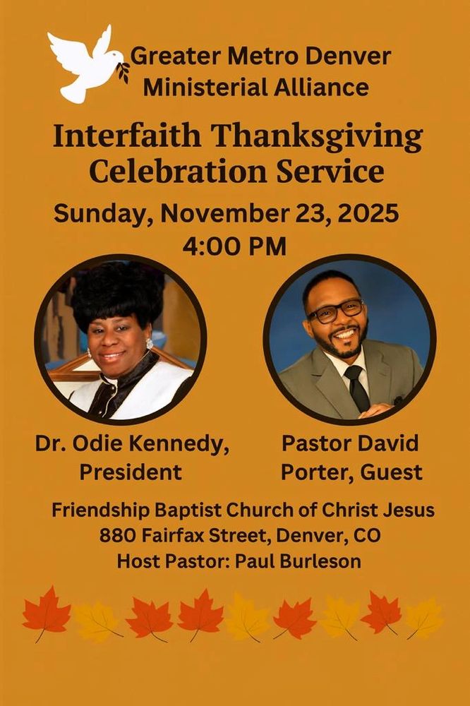 Greater Metro Denver Ministerial Alliance (GMDMA) congratulates and welcomes Pastor Dr. Odie Kennedy, its first female President. The GMDMA is an 85 year old organization that grew out of the need for social justice in the African American Community. The GMDMA is a Christ-centered organization that advances the Kingdom of God by mobilizing Church, community, and government to bring healing and restoration to the community at-large.